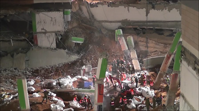 وكان قد انهار صباح اليوم، الإثنين، مبنى موقف سيارات ضخم من 4 طوابق تحت الأرض وسط مدينة تل أبيب، ما أدى إلى مصرع عاملين وسقوط عدد كبير من الجرحى، كما أسفر الحادث عن وجود عدد من العالقين، أجلت السلطات 24 منهم، بينما يتواصل البحث عن 5 عالقين تحت المبنى، جميعهم من العمال العرب.