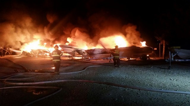 حريق في مرسى للقوارب على شاطىء بحيرة طبريا