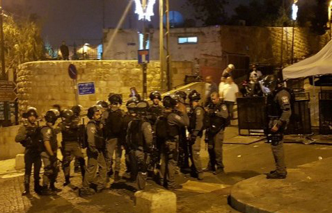 افادت الانباء عن وقوع إصابات بين المصلين قرب باب الاسباط في مدينة القدس القديمة بعد وقوع اشتباكات بين المصلين وعناصر الشرطة التي استخدمت قنابل الصوت والهراوات. وادى الالاف من المصلين المقدسيين صلاة المغرب في شارع باب الاسباط ومداخل البلدة القديمة في القدس، لليوم الثامن على التوالي، رفضا للبوابات الالكترونية التي وضعتها إسرائيل على مداخل المسجد الاقصى .وحضر آلاف المصلين من المقدسيين لأداء صلاة المغرب والعشاء في شارع باب الاسباط الرئيسي وداخل باب الاسباط ومنطقة باب المجلس، مع حضور امني مكثف للشرطة الإسرائيلية وحرس الحدود.