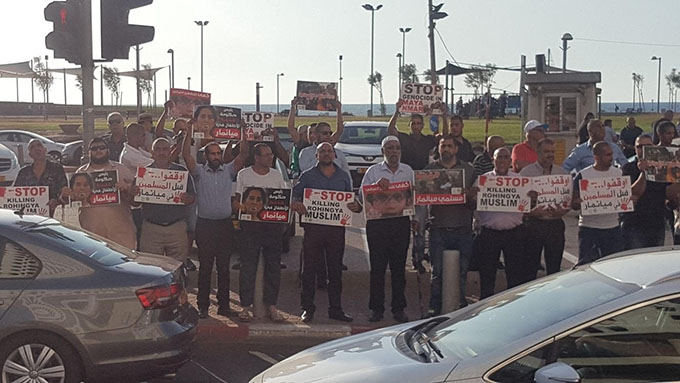 نظمت الحركة الإسلامية في البلاد وذراعها السياسية القائمة العربية الموحدة ، نظمت تظاهرة احتجاجية أمام سفارة ميانمار بتل أبيب مساء اليوم شارك بها المئات من النساء والرجال، وذلك احتجاجا ورفضا للجرائم والمجازر التي ترتكبها حكومة ميانمار وجيشها ومجموعات بوذية متطرفة بحق الأقلية الروهينغية المسلمة في اقليم أراكان في بورما.