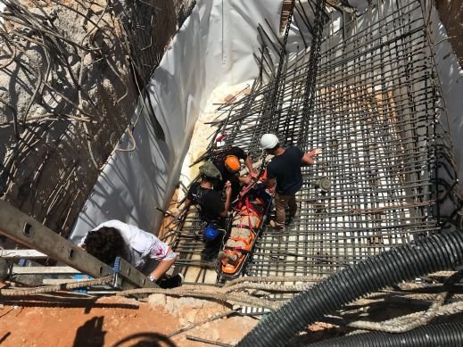 سقوط عاملين داخل حفرة في ورشة بناء وحالة احدهما خطيرة