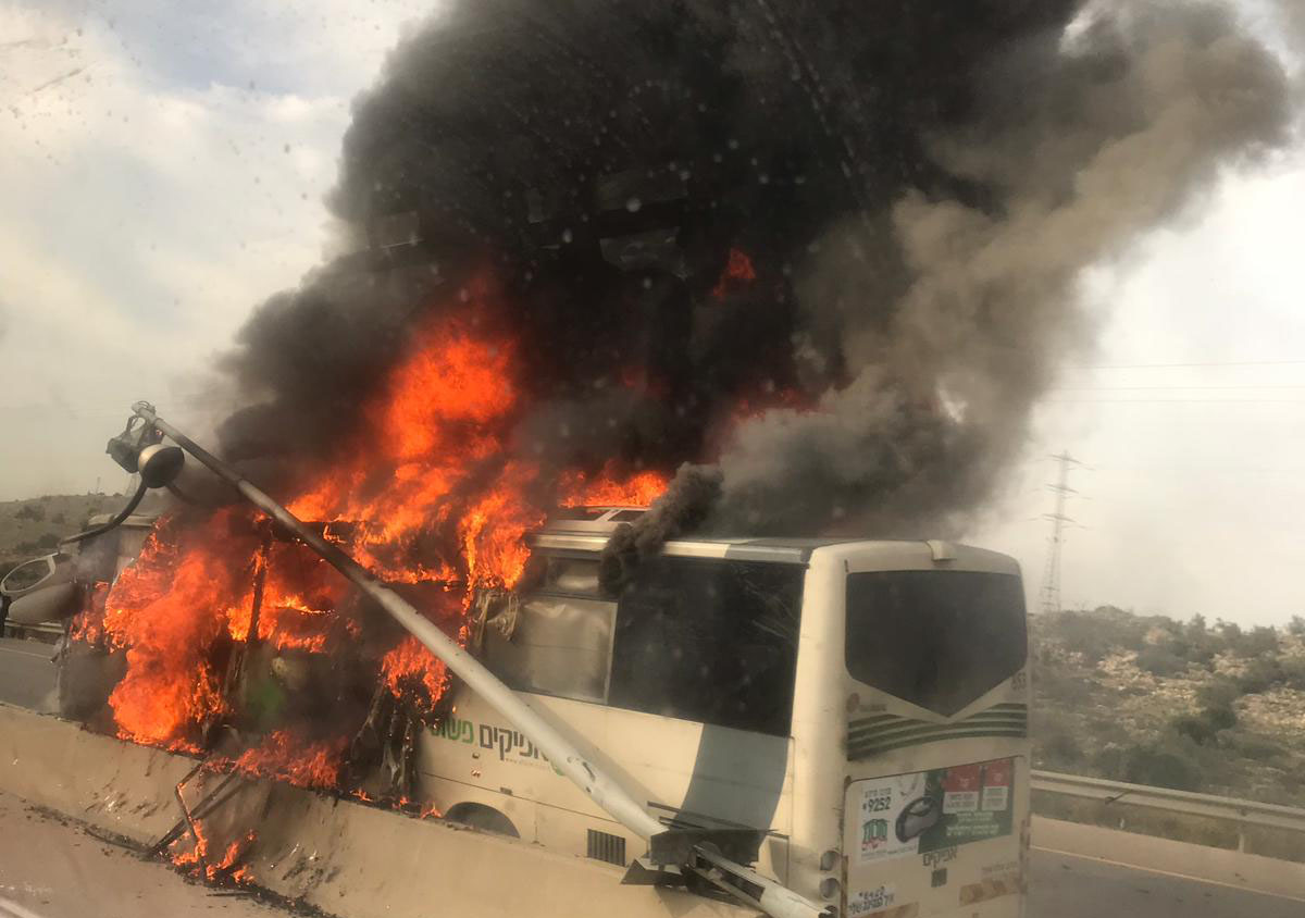 وقال الناطق الرسمي باسم سلطة الإطفاء للوسط العربي أن طاقم إطفاء وإنقاذ عمل على معالجة حادث طرق وقع، عصر اليوم الخميس، على مفرق "جيتي ابيشار في السامرة (منطقة الضفة الغربية)، بين سيارة وحافلة. وتبيّن انّ هنالك سائق عالق في أحد المركبتين، ونتيجة للحادث اندلعت النيران في المركبتين