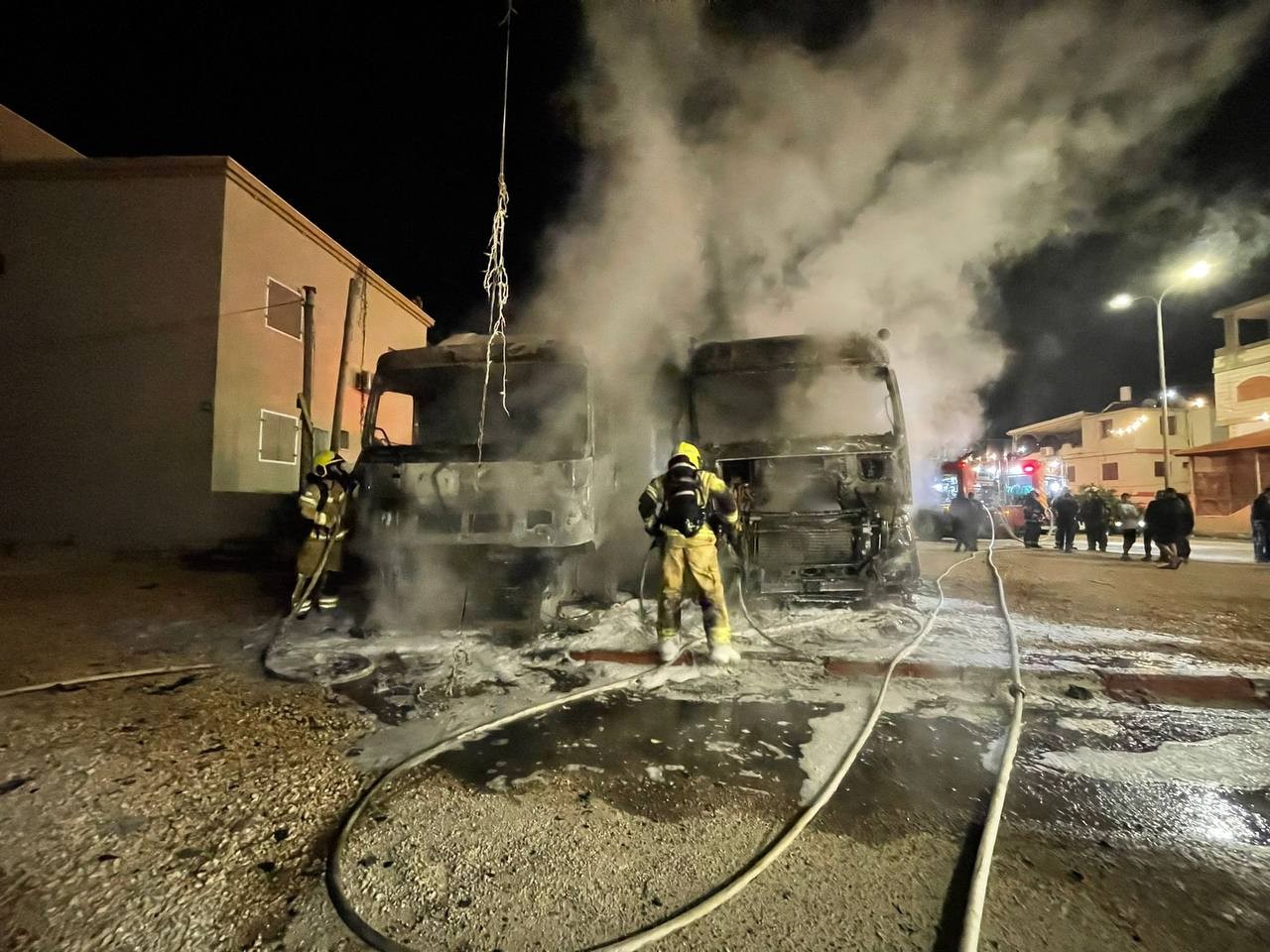 ووفقا للشبهات فإنه، على ما يبدو، يدور الحديث عن جناة مجهولين أحرقوا الشاحنتين عمدا، الساعة الثانية والنصف فجرا.
