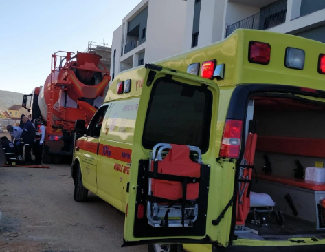 وأفاد الناطق بلسان نجمة داوود الحمراء أن مركز نجمة داوود الحمراء استلم قرابة الساعة 07:38 بلاغًا حول إصابة عامل (46 عامًا) من مضخة باطون خلال عمله بورشة بناء في معالوت ترشيحا،
