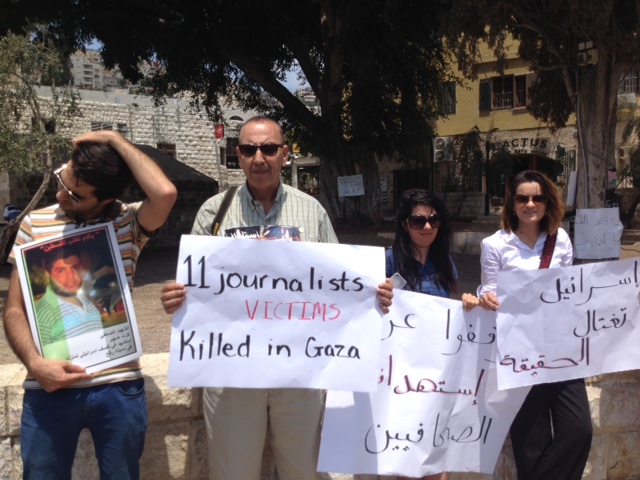 شارك العشرات من الصحفيين والصحفيات من مختلف وسائل الاعلام في الوسط العربي بمظاهرة رفع الشعارات والاعتصام وذلك احتجاجا على استشهاد حوالي ١١ صحفيا وإصابة اخرين خلال الحرب على غزة.