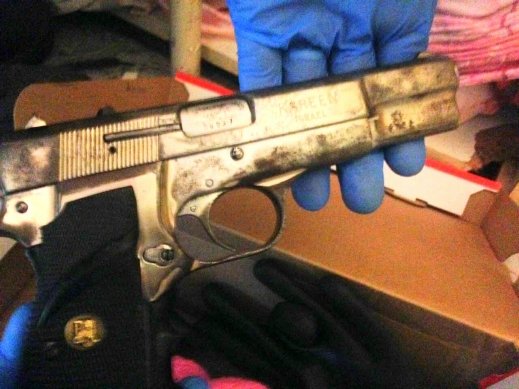 وكانت الشرطة قد داهمت منزل المشتبه ومع تفتيشها خزانة ملابسه في غرفة نومه، تم ضبط مسدس وقفازات بجانبه. والتحقيقات جارية.