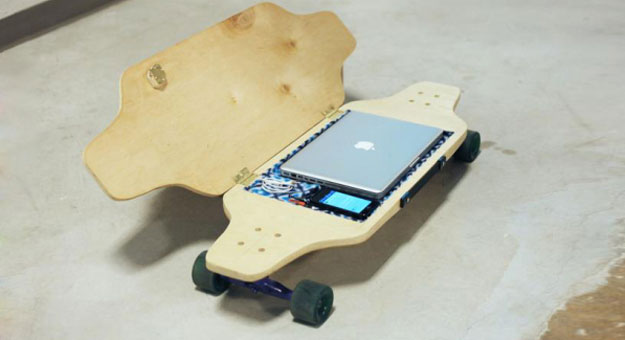 ابتكر المصممون لوح تزحلق حديث تستطيع من خلاله أن تخزن أجهزة الكمبيوتر المحمولة والموبايلات والمحافظ، وجميع الأغراض الخاصة بك .