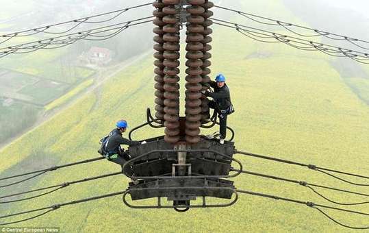على ارتفاع أكثر من "200" متر يقف أشجع عمال الكهرباء في العالم، لإنشاء وصيانة أبراج الضغط العالي العملاقة في الصين، والتي تنقل أكثر من "85" تيرا واط "85 بليون واط" سنوياً.