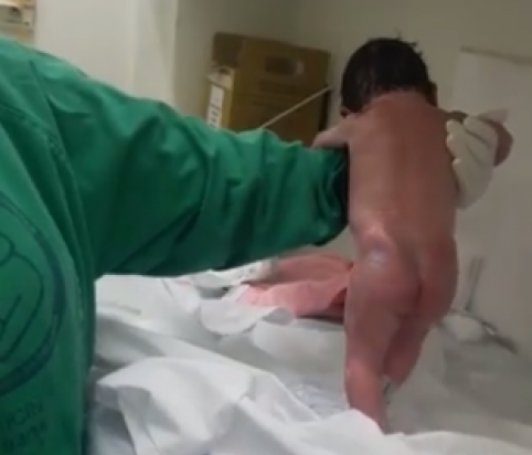 أذهلت طفلة الممرضات بعد أن بدأت بالمشي داخل غرفة الولادة في مستشفى برازيلي، بعد لحظات فقط من ولادتها.. حسب ما أظهره مقطع فيديو تناقله رواد مواقع التواصل.