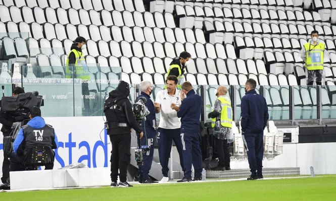وتواجد لاعبو يوفنتوس على أرض الملعب وأجروا تمارين الإحماء المعتادة قبل المباراة كما حضر الطاقم التحكيمي.