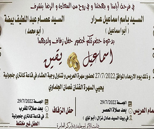 حفل زفاف اسماعيل باسم عرار
