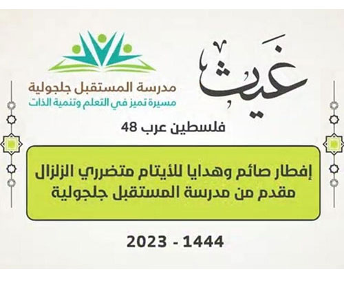"ملتقى العطاء" لطلاب راقة الصفوف السادسة قرّر طلاب المستقبل تقديم عائد المبادرة لأطفال سوريا متضرّري الزلزال دعمًا وعونًا لهم.