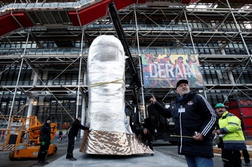 المنحوتة العملاقة للفنان الفرنسي سيزار بالداكيني والتي نحتت على شكل اصبع الابهام، تمّ تثبيتها اليوم خارج متحف بومبيدو للفنون الجميلة في العاصمة الفرنسية باريس وذلك قبيل المعرض الذي المخصص للفنان داخل المتحف.