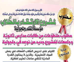 الرئيسية » اعلانات » مطلوب : لمشروع الارتقاء بالطلاب